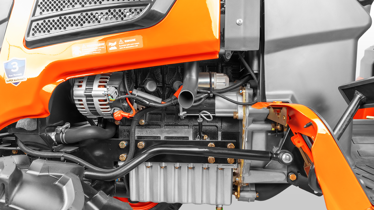 Трактора оснащены дизельными двигателями Perkins, выпускаемые на одном из заводов Perkins в Китае. Электронная система впрыска гарантирует стабильную работу во всём диапазоне нагрузок, а легкий запуск, низкая вибрация и шум приближают ощущения от управления трактором к эксплуатации легкового автомобиля. Эти двигателя не уступают по качеству японским.
