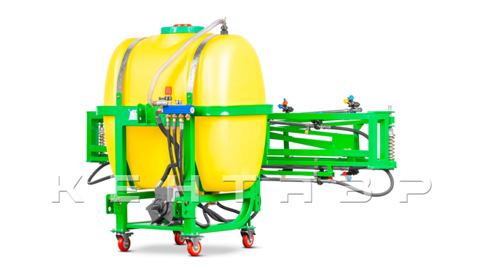 На агрегате установлен регулятор с манометром и отключением секций крыльев. Секционное перекрытие позволяет работать по краю поля, на узких участках и при частичной обработке без перерасхода препарата. Компоновка коллектора обеспечивает быстрый доступ к кранам и шлангам для контроля и регулировки.